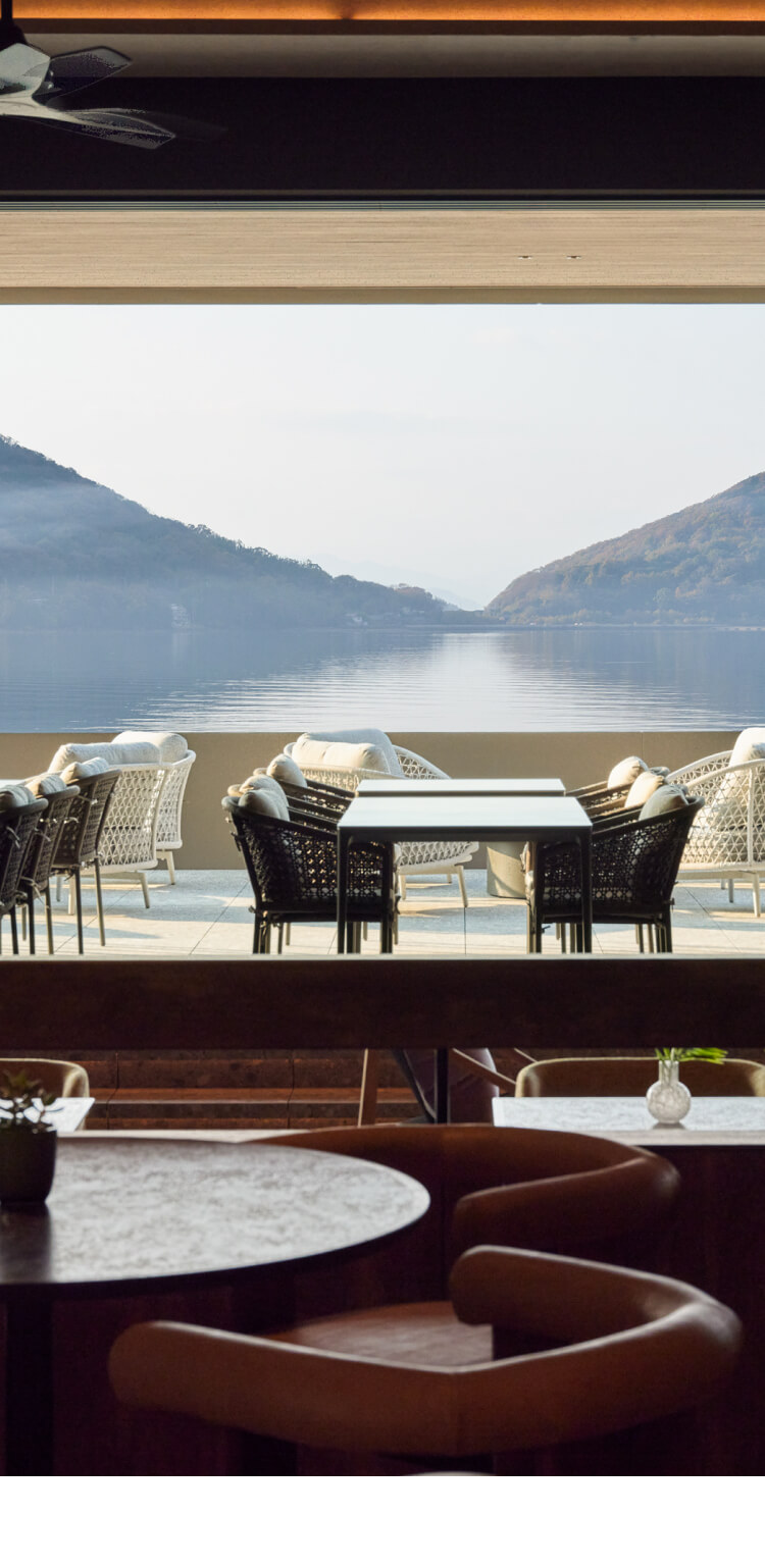 瀬戸内の穏やかな海を望む小豆島のテラス付きレストラン。島の食材と心温まるおもてなし、旅の1日を心地よく始め、静かに締めくくる時間を演出します。